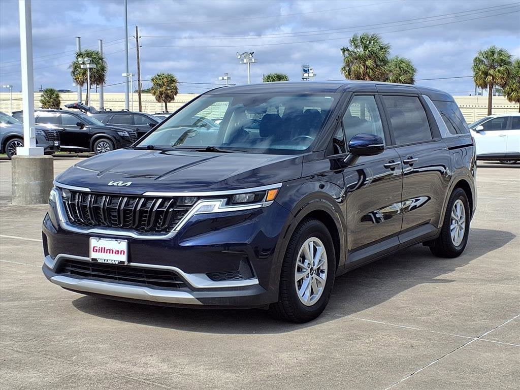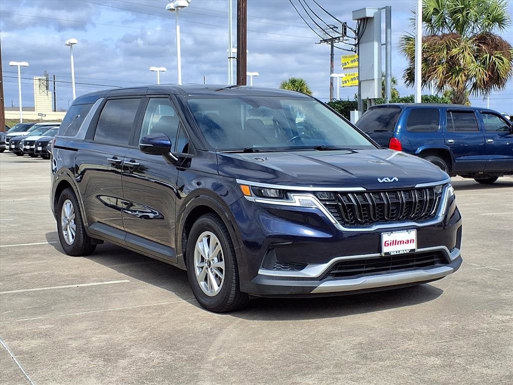 Gillman's Lifetime Engine Warranty lasts as long as you own your vehicle - free with the Gillman Pre-Owned Promise. If the vehicle isn't right for you, return it in purchase condition within 2 days or 200 miles as part of our Happy-Driving Guarantee. Drive in comfort and style with this dark blue 2022 Kia Carnival LX 4dr Mini-Van. Perfect for families or anyone needing flexible space, it features removable captain's chairs with 180-degree rear-facing capability, dual power sliding side doors, and a spacious third row with USB charging ports. Enjoy the latest tech including an 8-inch touchscreen with wireless Apple CarPlay and Android Auto, Bluetooth, and Kia MyUVO app compatibility for remote start and maintenance scheduling. Safety is top-notch, offering front and rear automatic emergency braking, pedestrian detection, lane keeping assist, blind spot monitoring, rear cross traffic alert, and a rearview camera. Additional comforts include heated side mirrors, rear privacy glass, cruise control, and multiple storage solutions throughout the cabin. The powerful 3.5L V6 engine and smooth 8-speed automatic transmission make every drive enjoyable. Don't miss out on this well-equipped, versatile minivan that's ready for your next adventure! All vehicles subject to prior sale. We are not responsible for typographical errors and may change information without notice. Photos may not depict the actual vehicle. Tax, title, and license fees not included. Dealer Discount available to all buyers.Vehicles purchased from Gillman Automotive Group include a Bring It Back Guarantee: return the vehicle in purchase condition within two days or 200 miles. New current-model-year vehicles and qualifying pre-owned vehicles (under 90,000 miles and less than 7 years old) are eligible. Guarantee is non-transferable and has no cash value. Lifetime Warranty available on select pre-owned vehicles. See dealer for details; restrictions may apply.