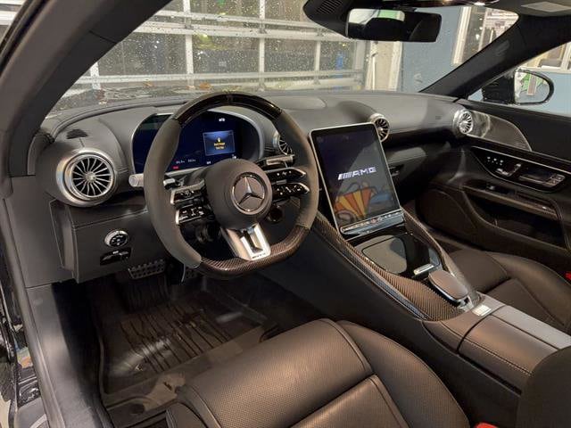 Experience the pinnacle of performance and luxury with this stunning black 2024 Mercedes-Benz SL-Class AMG SL 55 4MATIC Roadster, showing only 2,513 miles on the odometer. Powered by a 4.0L Twin Turbo V8 delivering 469hp and 516 ft-lbs of torque, paired with AMG Performance Trim, AWD, and a 9-speed shiftable automatic, this roadster is engineered for exhilaration. Key features include the AMG Night Package Plus, 21-inch AMG 10-Spoke Y-Design wheels, AMG Active Ride Control with front axle lift, and AMG Carbon Fiber interior trim. Stay connected and in control with the MBUX infotainment system, 11.9-inch touchscreen, wireless Apple CarPlay/Android Auto, Burmester premium sound, and navigation with over-the-air map updates. Enjoy advanced safety with the Driver Assistance Package, surround view camera, front/rear parking sensors, pedestrian detection, and Guard 360. The heated, ventilated, and massaging leather seats, customizable ambient lighting, and power convertible roof ensure every drive is first class. Don't miss your chance to own this rare combination of performance, technology, and luxury.
