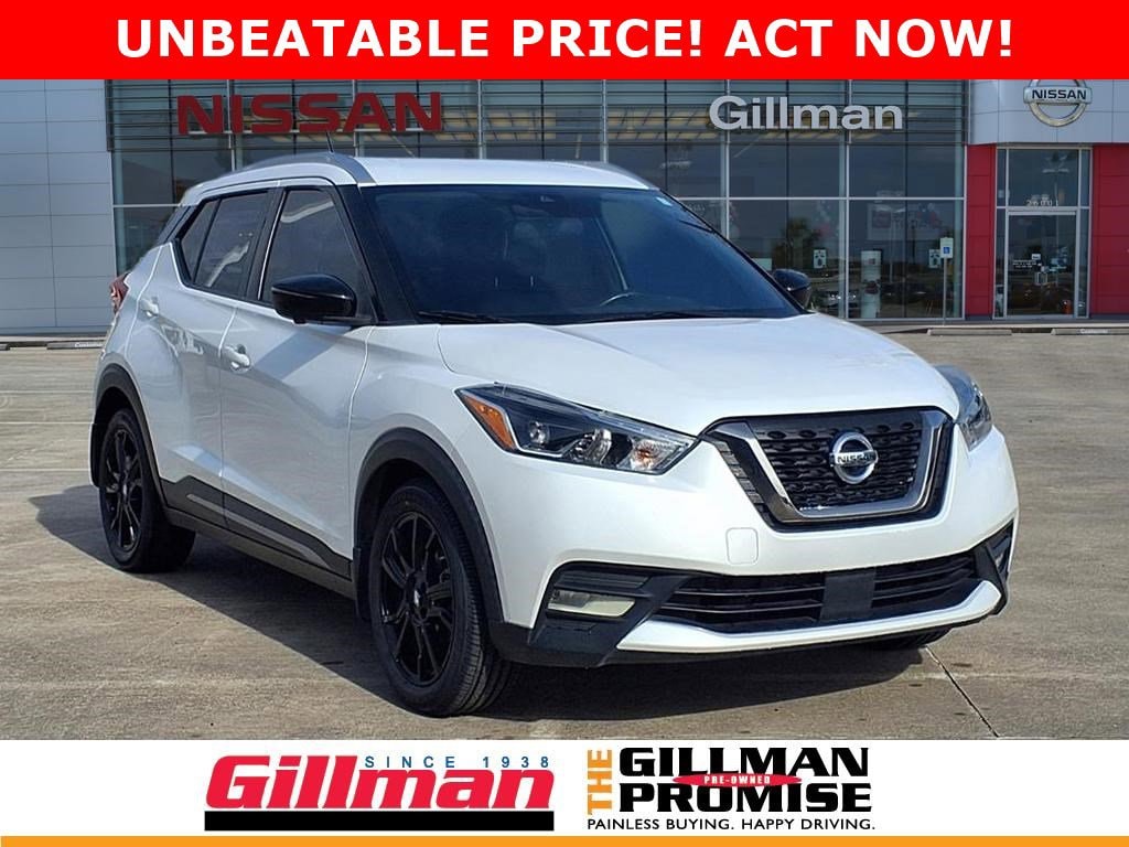 Gillman's Lifetime Engine Warranty lasts as long as you own your vehicle - free with the Gillman Pre-Owned Promise. If the vehicle isn't right for you, return it in purchase condition within 2 days or 200 miles as part of our Happy-Driving Guarantee. Experience style, safety, and efficiency with this white 2020 Nissan Kicks SR 4dr Crossover. Powered by a fuel-efficient 1.6L I4 engine with Xtronic CVT and front-wheel drive, this Kicks is ready for city commutes or weekend adventures. Enjoy advanced safety features including Front and Rear Automatic Emergency Braking, Pedestrian Detection, Lane Deviation Sensors, Blind Spot Warning, and Rear Cross Traffic Alert for peace of mind. The SR trim offers an upscale touch with aluminum alloy wheels, LED headlights, and a leather-wrapped steering wheel. Stay connected with a 7-inch touchscreen, NissanConnect, Apple CarPlay, Android Auto, and SiriusXM radio. Convenience is at your fingertips with push-button start, remote engine start, proximity entry, and a surround view camera system for effortless parking. Ample cargo space, split-folding rear seats, and roof rails make it versatile for all your needs. Don't miss the chance to own this well-equipped, stylish crossover-schedule your test drive today! All vehicles subject to prior sale. We are not responsible for typographical errors and may change information without notice. Photos may not depict the actual vehicle. Tax, title, and license fees not included. Dealer Discount available to all buyers.Vehicles purchased from Gillman Automotive Group include a Bring It Back Guarantee: return the vehicle in purchase condition within two days or 200 miles. New current-model-year vehicles and qualifying pre-owned vehicles (under 90,000 miles and less than 7 years old) are eligible. Guarantee is non-transferable and has no cash value. Lifetime Warranty available on select pre-owned vehicles. See dealer for details; restrictions may apply.