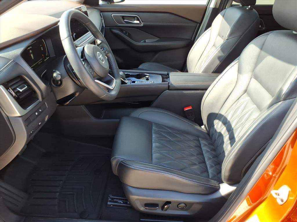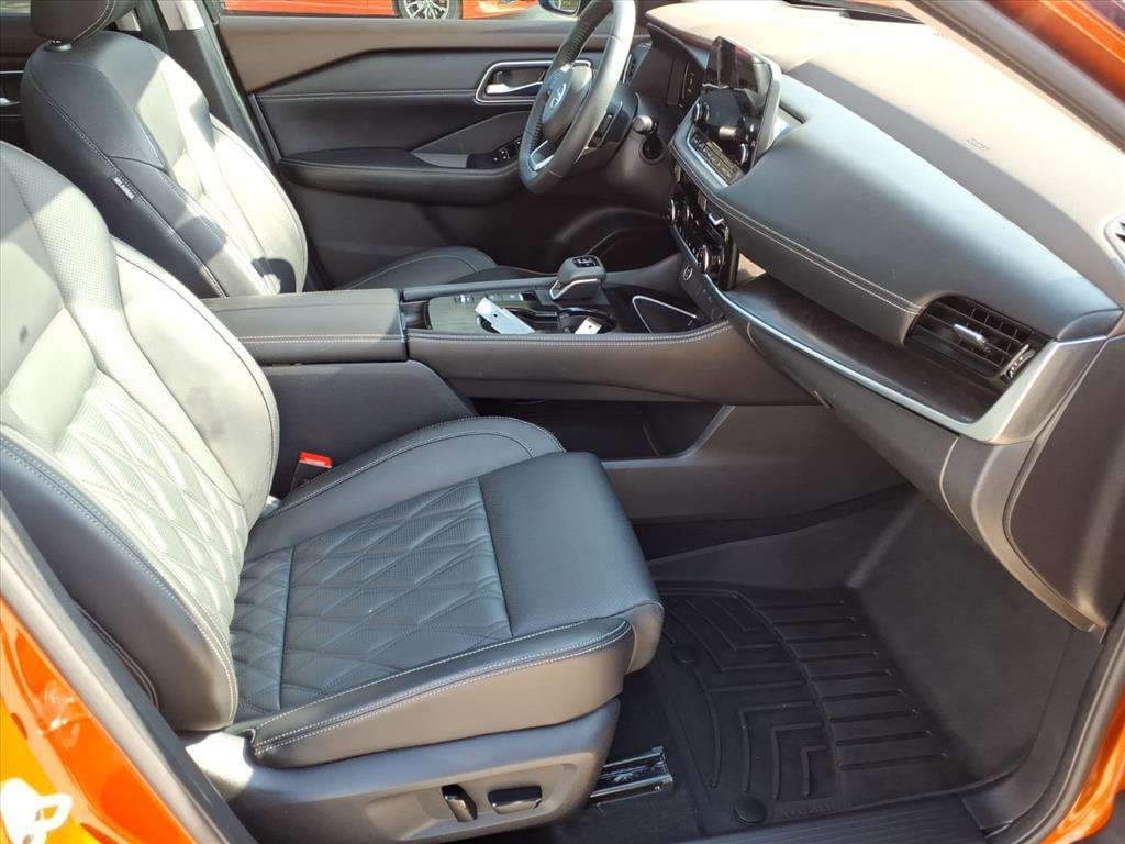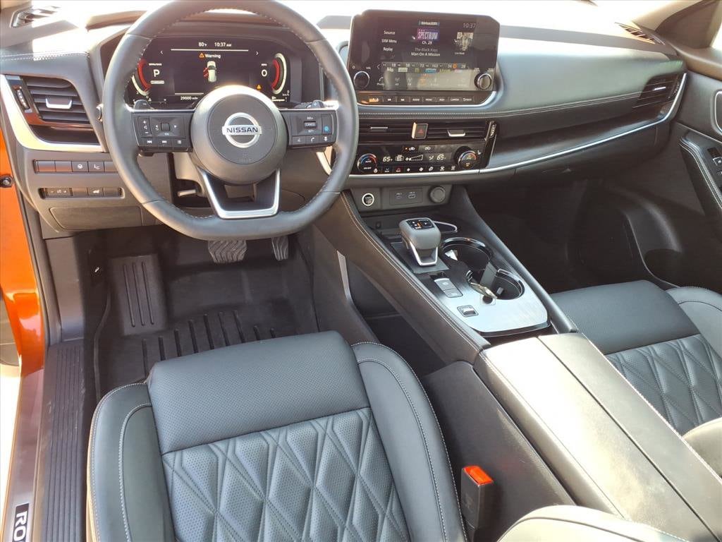 Gillman's Lifetime Engine Warranty lasts as long as you own your vehicle - free with the Gillman Pre-Owned Promise. If the vehicle isn't right for you, return it in purchase condition within 2 days or 200 miles as part of our Happy-Driving Guarantee. (Valid on vehicles under 90,000 miles and less than 7 years old). Turn heads in this striking Orange 2021 Nissan Rogue Platinum! Enjoy premium comfort with leather-trimmed upholstery, heated and power-adjustable front seats, and a panoramic moonroof. Stay connected with a 9-inch touchscreen featuring wireless Apple CarPlay and Android Auto, Bose premium audio, NissanConnect, and built-in Wi-Fi hotspot. Drive with confidence using advanced safety features like ProPILOT Assist with adaptive cruise control, lane keeping assist, surround view camera, front/rear automatic emergency braking with pedestrian detection, blind spot monitoring, and rear cross traffic alert. Convenience is at your fingertips with remote start, power liftgate, and customizable digital instrument cluster. Additional highlights include ambient lighting, memory settings, rear USB-C/USB outlets, and aluminum alloy wheels. Experience top-tier technology, comfort, and safety in this well-equipped Rogue Platinum today! All vehicles subject to prior sale. We are not responsible for typographical errors and may change information without notice. Photos may not depict the actual vehicle. Tax, title, and license fees not included. Dealer Discount available to all buyers.Vehicles purchased from Gillman Automotive Group include a Bring It Back Guarantee: return the vehicle in purchase condition within two days or 200 miles. New current-model-year vehicles and qualifying pre-owned vehicles (under 90,000 miles and less than 7 years old) are eligible. Guarantee is non-transferable and has no cash value. Lifetime Warranty available on select pre-owned vehicles. See dealer for details; restrictions may apply.