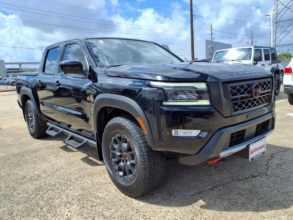 Gillman's Lifetime Engine Warranty lasts as long as you own your vehicle - free with the Gillman Pre-Owned Promise. If the vehicle isn't right for you, return it in purchase condition within 2 days or 200 miles as part of our Happy-Driving Guarantee. Take on any adventure with this Black 2023 Nissan Frontier PRO-4X Crew Cab 4x4. Powered by a robust 3.8L V6 engine and 9-speed automatic transmission, this truck delivers both strength and off-road capability with features like off-road tuned suspension, hill descent assist, rear locking differential, and front/rear skid plates. Stay connected and in control with a 9-inch touchscreen infotainment system, wireless Apple CarPlay and Android Auto, NissanConnect, navigation with real-time traffic, Wi-Fi hotspot, and multiple USB/USB-C ports. Advanced safety includes front and pedestrian automatic emergency braking, driver attention alert, rearview camera, and a full suite of airbags. Enjoy comfort with premium cloth seats, a leather steering wheel, dual-zone automatic climate control, and a power driver's seat. Additional highlights: aluminum alloy wheels, LED headlights/fog lights/taillights, keyless entry and start, tow/haul mode, and under-seat storage. This Frontier is ready for work or play-don't miss out on a truck that balances rugged performance with modern tech and comfort. All vehicles subject to prior sale. We are not responsible for typographical errors and may change information without notice. Photos may not depict the actual vehicle. Tax, title, and license fees not included. Dealer Discount available to all buyers. Vehicles purchased from Gillman Automotive Group include a Bring It Back Guarantee: return the vehicle in purchase condition within two days or 200 miles. New current-model-year vehicles and qualifying pre-owned vehicles (under 90,000 miles and less than 7 years old) are eligible. Guarantee is non-transferable and has no cash value. Lifetime Warranty available on select pre-owned vehicles. See dealer for details; restrictions may apply.