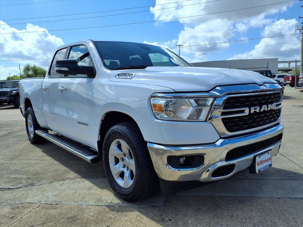 Gillman's Lifetime Engine Warranty lasts as long as you own your vehicle - free with the Gillman Pre-Owned Promise. If the vehicle isn't right for you, return it in purchase condition within 2 days or 200 miles as part of our Happy-Driving Guarantee. Discover the capability and comfort of this White 2022 Ram 1500 Big Horn Quad Cab 4x2 with a 6.4 ft. bed. Powered by the efficient Pentastar eTorque 3.6L V6 engine paired with an 8-speed automatic transmission, this truck delivers both performance and fuel economy. Enjoy the Big Horn Level 1 Equipment Group, chrome wheel-to-wheel side steps, and aluminum alloy wheels for a standout look. Stay connected with Uconnect infotainment and Bluetooth, while features like push-button start, remote start system, and power locking tailgate add convenience. The spacious interior offers cloth upholstery, a multi-function leather steering wheel, and ample storage including in-seat cushion and under rear seats. Safety is prioritized with a rearview camera, front/rear side curtain airbags, trailer stability control, and tire pressure monitoring. This Ram is ready to work or play with Class III trailer hitch, 7-pin wiring, and tie-down anchors. Don't miss your chance to own a well-equipped, dependable pickup that's ready for anything. All vehicles subject to prior sale. We are not responsible for typographical errors and may change information without notice. Photos may not depict the actual vehicle. Tax, title, and license fees not included. Dealer Discount available to all buyers. Vehicles purchased from Gillman Automotive Group include a Bring It Back Guarantee: return the vehicle in purchase condition within two days or 200 miles. New current-model-year vehicles and qualifying pre-owned vehicles (under 90,000 miles and less than 7 years old) are eligible. Guarantee is non-transferable and has no cash value. Lifetime Warranty available on select pre-owned vehicles. See dealer for details; restrictions may apply.