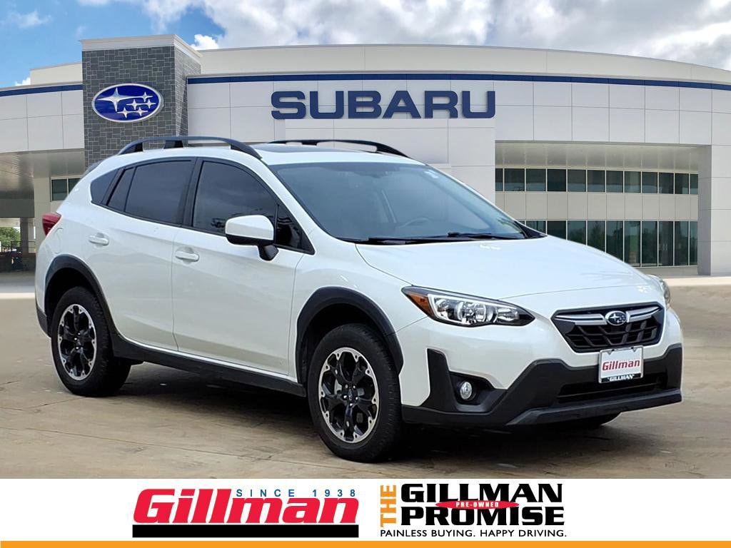 Gillman's Lifetime Engine Warranty lasts as long as you own your vehicle - free with the Gillman Pre-Owned Promise. If the vehicle isn't right for you, return it in purchase condition within 2 days or 200 miles as part of our Happy-Driving Guarantee. (Valid on vehicles under 90,000 miles and less than 7 years old). Experience adventure and reliability in this 2023 Subaru Crosstrek Premium AWD, finished in classic white. Equipped with Subaru's renowned Symmetrical All-Wheel Drive and an 8-speed shiftable CVT, this crossover is ready for any road or weather. Enjoy premium comfort features like heated front seats, automatic climate control, and a power driver seat. Stay connected with Apple CarPlay, Android Auto, and STARLINK infotainment on a 6.5-inch touchscreen, plus Bluetooth wireless data and multiple USB ports. Safety comes first with adaptive cruise control, lane keeping assist, automatic emergency braking, and blind spot detection with rear cross traffic alert. Additional highlights include a moonroof, keyless access with push button start, heated side mirrors, all-weather floor liners, and a retractable cargo cover for versatility. Versatile 60/40 split rear seats and roof rails provide room for gear, while aluminum alloy wheels and a rear bumper cover add style and protection. Take on every journey with confidence in this well-equipped Crosstrek-ready for your next adventure! All vehicles subject to prior sale. We are not responsible for typographical errors and may change information without notice. Photos may not depict the actual vehicle. Tax, title, and license fees not included. Dealer Discount available to all buyers.Vehicles purchased from Gillman Automotive Group include a Bring It Back Guarantee: return the vehicle in purchase condition within two days or 200 miles. New current-model-year vehicles and qualifying pre-owned vehicles (under 90,000 miles and less than 7 years old) are eligible. Guarantee is non-transferable and has no cash value. Lifetime Warranty available on select pre-owned vehicles. See dealer for details; restrictions may apply.