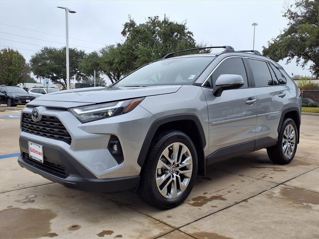 Discover the practically new 2025 Toyota RAV4 XLE Premium in sleek Silver, with only 834 miles on the odometer! This versatile SUV combines sporty style with advanced technology and comfort. Enjoy features like Toyota Audio Multimedia with an 8-inch touchscreen, wireless Apple CarPlay and Android Auto, and a power moonroof for a premium driving experience. Stay safe with Toyota Safety Sense, including adaptive cruise control, lane keeping assist, pedestrian detection, and intersection turn automatic emergency braking. The leatherette-trimmed interior offers an 8-way power driver's seat with lumbar support and dual-zone automatic climate control. Convenient amenities include a power liftgate, push-button start, heated side mirrors, blind spot monitoring, rear cross traffic alert, and multiple USB-C and USB power outlets. With LED headlights, alloy wheels, and a fuel-efficient 2.5L engine paired to an 8-speed automatic, this RAV4 is ready for your next adventure. Don't miss out on this nearly-new SUV-schedule your test drive today!
