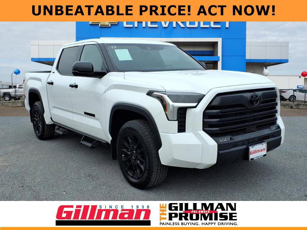 Gillman's Lifetime Engine Warranty lasts as long as you own your vehicle - free with the Gillman Pre-Owned Promise. If the vehicle isn't right for you, return it in purchase condition within 2 days or 200 miles as part of our Happy-Driving Guarantee. (Valid on vehicles under 90,000 miles and less than 7 years old). Discover the power and versatility of the 2025 Toyota Tundra 4x4 SR5 CrewMax with just 350 miles on the odometer. Featuring a potent 3.4L Twin Turbo V6 engine producing 389hp and 479 ft-lbs of torque, this Tundra is ready for work or play. Enjoy advanced tech like Toyota Audio Multimedia Infotainment with an 8-inch touchscreen, Wireless Apple CarPlay and Android Auto, Bluetooth, and Wi-Fi hotspot capability. Drive with confidence thanks to adaptive cruise control, lane keeping assist, multiple automatic emergency braking systems, and pedestrian detection. The spacious CrewMax cab offers cloth upholstery, power-adjustable front seats, and a rear folding bench for maximum flexibility. For added convenience, you'll find push-button start, a power sliding rear window, LED headlights and taillights, bed step, and trailer brake controller with 7-pin wiring. With its robust 4x4 capability, 10-speed automatic transmission, and included TRD Wheel, Predator Step, and Exhaust Tip Package, this Tundra is perfectly equipped for any adventure. Contact us today to schedule your test drive and experience the 2025 Tundra difference. All vehicles subject to prior sale. We are not responsible for typographical errors and may change information without notice. Photos may not depict the actual vehicle. Tax, title, and license fees not included. Dealer Discount available to all buyers.Vehicles purchased from Gillman Automotive Group include a Bring It Back Guarantee: return the vehicle in purchase condition within two days or 200 miles. New current-model-year vehicles and qualifying pre-owned vehicles (under 90,000 miles and less than 7 years old) are eligible. Guarantee is non-transferable and has no cash value. Lifetime Warranty available on select pre-owned vehicles. See dealer for details; restrictions may apply.