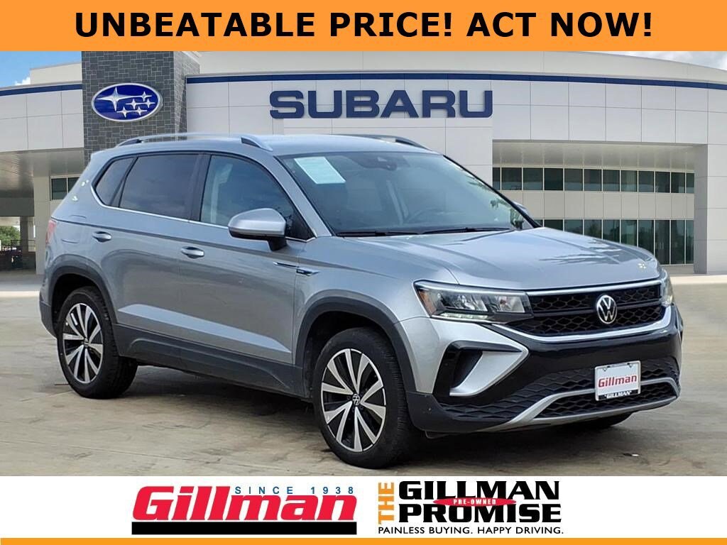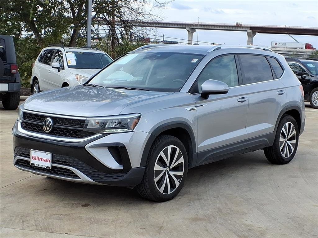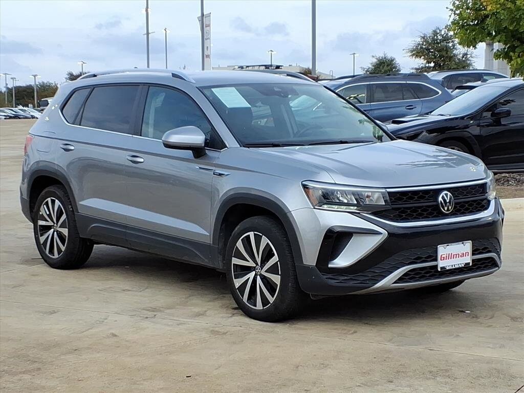 Gillman's Lifetime Engine Warranty lasts as long as you own your vehicle - free with the Gillman Pre-Owned Promise. If the vehicle isn't right for you, return it in purchase condition within 2 days or 200 miles as part of our Happy-Driving Guarantee. (Valid on vehicles under 90,000 miles and less than 7 years old). Drive in style and comfort with this gray 2024 Volkswagen Taos SE. Powered by a 1.5L Turbo I4 engine paired with an 8-speed shiftable automatic transmission, this FWD SUV delivers both efficiency and responsive performance. Enjoy advanced connectivity with MIB3 Infotainment, wireless Apple CarPlay and Android Auto, and Amazon Alexa compatibility. Stay safe on the road with features like Front and Rear Automatic Emergency Braking, Pedestrian Detection, Lane Keeping Assist with Blind Spot Integration, and Adaptive Cruise Control. Relax in the well-appointed cabin with leatherette upholstery, heated front seats and steering wheel, and dual-zone automatic climate control. Convenience abounds with remote engine start, push-button start, rearview camera, power-operated rear liftgate, and multiple USB-C outlets. The Volkswagen Taos SE offers the perfect combination of technology, safety, and comfort-ready for your next adventure. Schedule your test drive today! All vehicles subject to prior sale. We are not responsible for typographical errors and may change information without notice. Photos may not depict the actual vehicle. Tax, title, and license fees not included. Dealer Discount available to all buyers.Vehicles purchased from Gillman Automotive Group include a Bring It Back Guarantee: return the vehicle in purchase condition within two days or 200 miles. New current-model-year vehicles and qualifying pre-owned vehicles (under 90,000 miles and less than 7 years old) are eligible. Guarantee is non-transferable and has no cash value. Lifetime Warranty available on select pre-owned vehicles. See dealer for details; restrictions may apply.