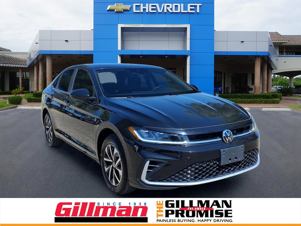 Gillman's Lifetime Engine Warranty lasts as long as you own your vehicle - free with the Gillman Pre-Owned Promise. If the vehicle isn't right for you, return it in purchase condition within 2 days or 200 miles as part of our Happy-Driving Guarantee. Drive in style and confidence with this sleek Black 2025 Volkswagen Jetta S 4dr Sedan. Powered by an efficient 1.5L Turbo I4 engine paired with an 8-speed automatic transmission, this Jetta delivers a smooth, responsive ride. Enjoy advanced safety features like Front Automatic Emergency Braking, Rear Cross Traffic Alert, Lane Keeping Assist with Blind Spot Integration, and Adaptive Cruise Control for peace of mind on every journey. Inside, stay connected with MIB3 Infotainment, a crisp 8-inch touchscreen, Apple CarPlay, Android Auto, and Amazon Alexa compatibility. Comfort features include automatic climate control, adjustable front seats, and a leather-wrapped steering wheel. Additional highlights: LED headlights and taillights, rain-sensing wipers, rearview camera, and keyless entry. The Jetta S is designed with both practicality and modern technology in mind, making it the perfect choice for your daily commute or weekend adventures. Visit us today to experience this impressive sedan for yourself! All vehicles subject to prior sale. We are not responsible for typographical errors and may change information without notice. Photos may not depict the actual vehicle. Tax, title, and license fees not included. Dealer Discount available to all buyers.Vehicles purchased from Gillman Automotive Group include a Bring It Back Guarantee: return the vehicle in purchase condition within two days or 200 miles. New current-model-year vehicles and qualifying pre-owned vehicles (under 90,000 miles and less than 7 years old) are eligible. Guarantee is non-transferable and has no cash value. Lifetime Warranty available on select pre-owned vehicles. See dealer for details; restrictions may apply.